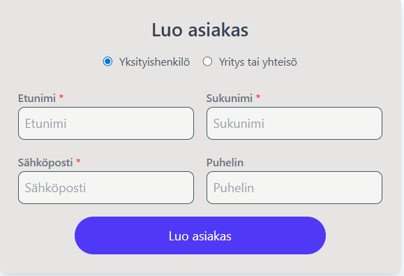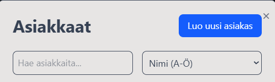 * Mikäli asiakasta ei löydy listalta klikkaa “Luo uusi asiakas”&#x20;