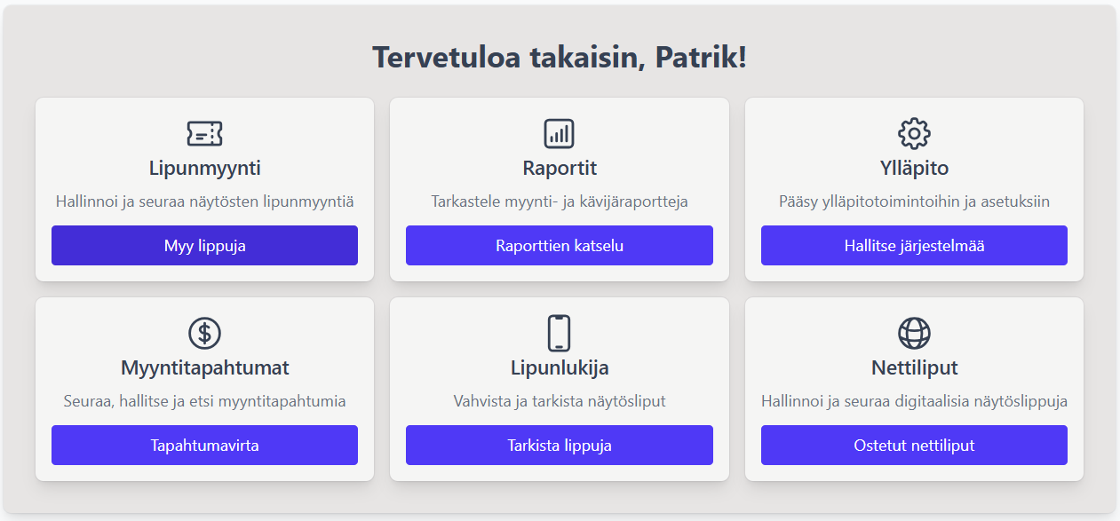 * Valitse päävalikosta Lipunmyynti&#x20;