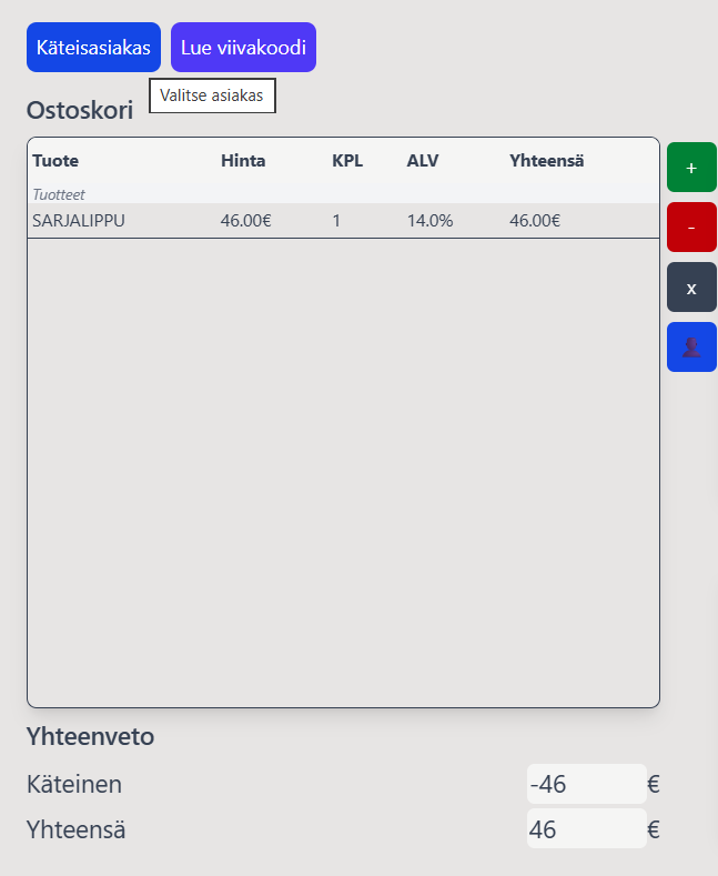 * Liput tulostuvat automaattisesti myynnin päätyttyä mikäli sinulla on lippujen tulostus päällä