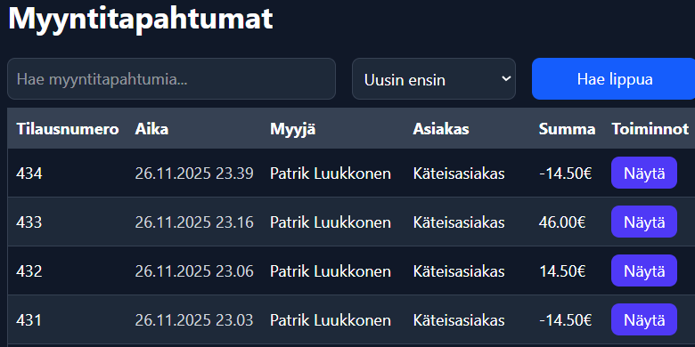 * Paina näytä myyntitapahtuman kohdalla&#x20;
