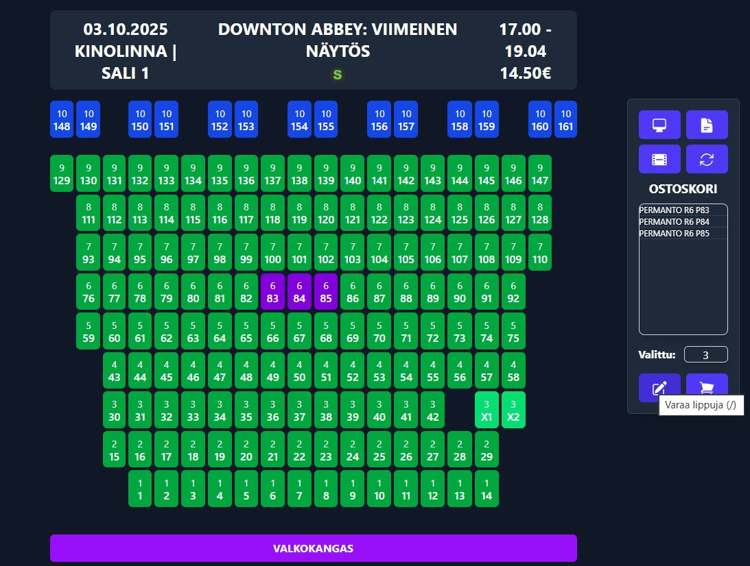 1. Valitse näytös ja asiakkaan toivomat paikat:&#x20;
