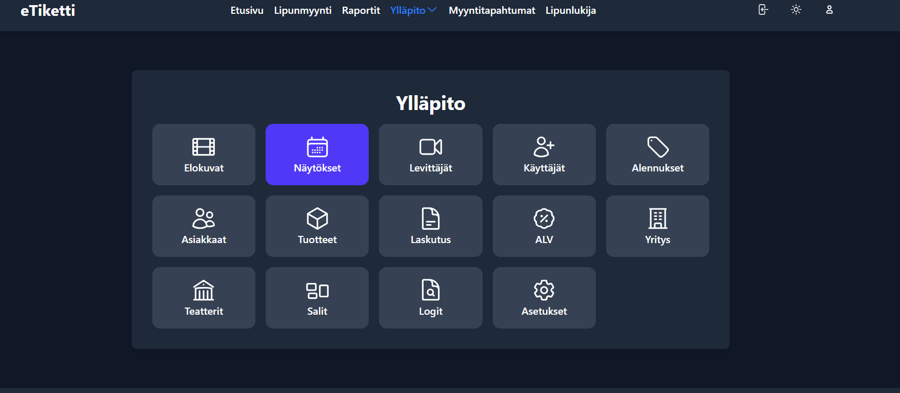 ## 2. Siirry elokuvaesitysten hallintaan&#x20;