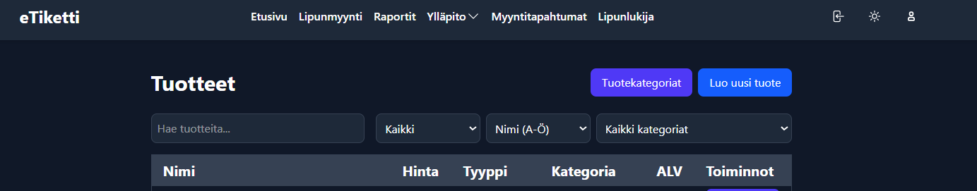 1. Avaa eTiketti-kassajärjestelmän hallintapaneeli selaimessa.&#x20;