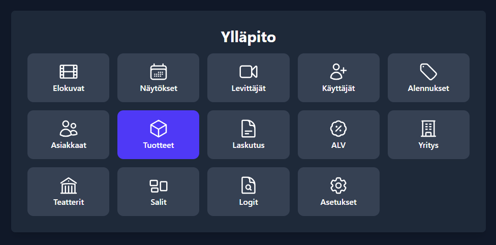 3. Valitse valikosta **Ylläpito** → **Tuotteet**.&#x20;